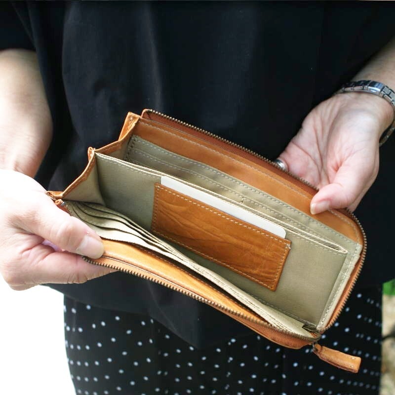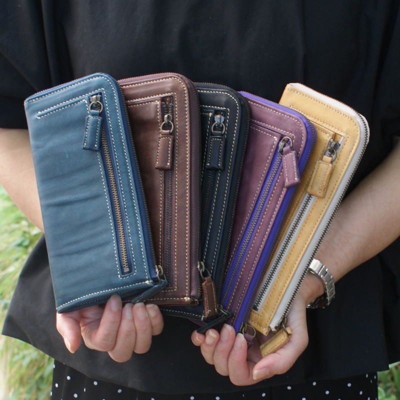 【rena豊岡】【豊岡製】スペイン牛革(仔牛革)手絞りオイル仕上げ L字ファスナー長財布(FB-009) | 豊岡製オリジナルバッグ製造販売【日本製・バッグ財布 専門店】レナ ジャパンメイド ショップ