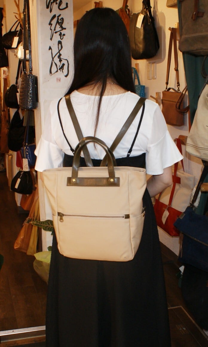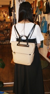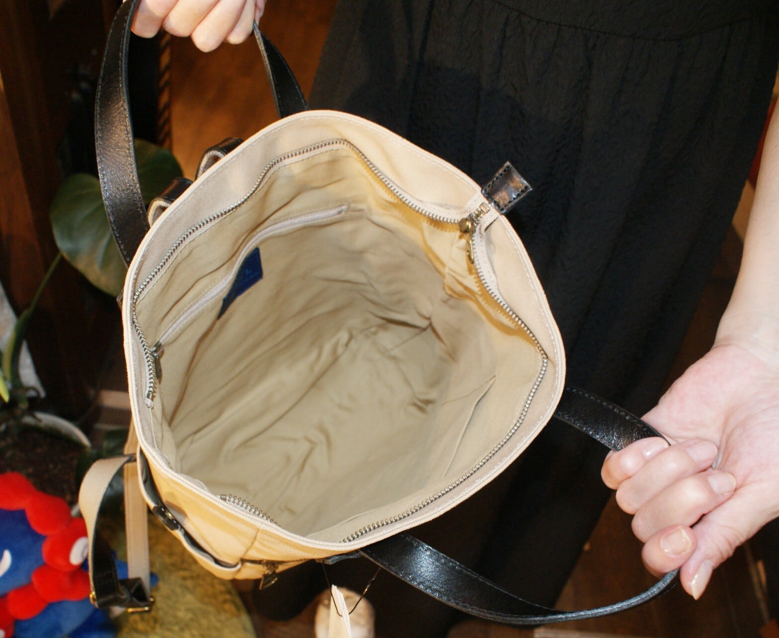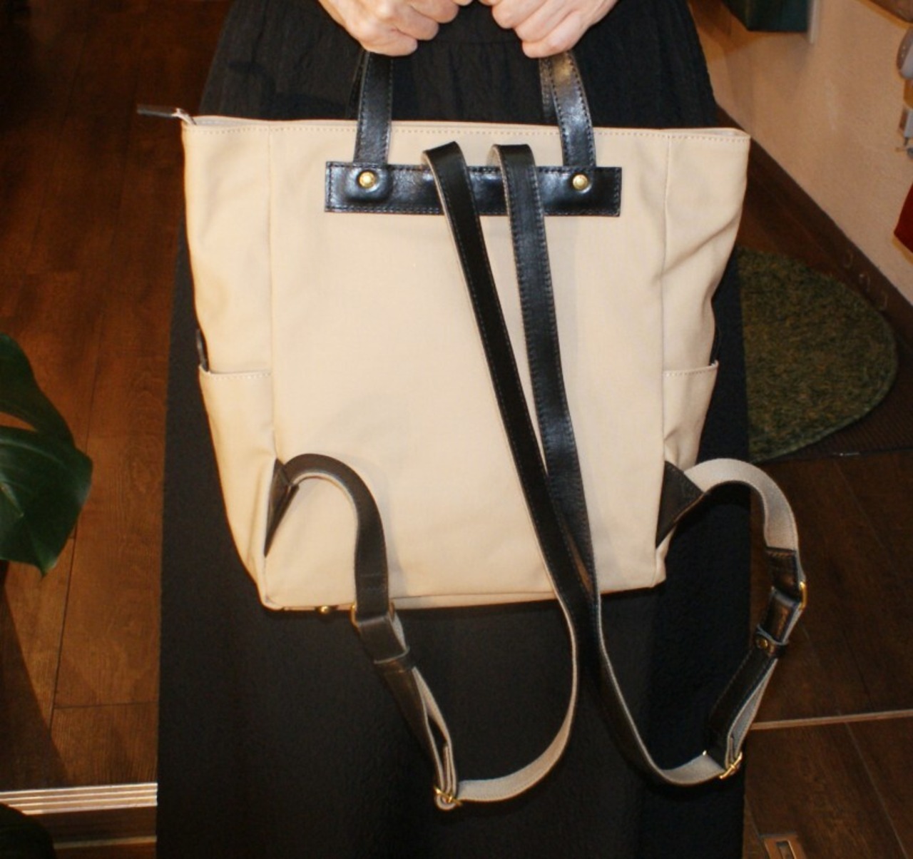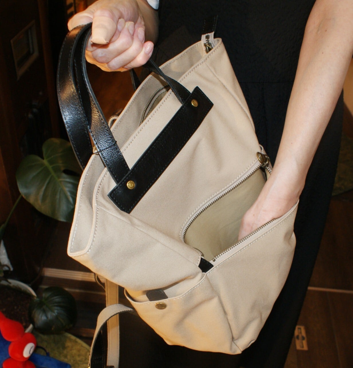 本商品は10号帆布を使用しており、丈夫さとデザイン性を両立。上質な革と組み合わせることで、スタイリッシュながらも機能的なリュックが実現しました。メインコンパートメントは広めの開口部で、荷物の出し入れがスムーズです。
