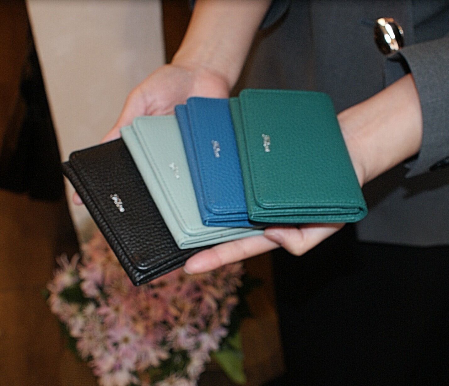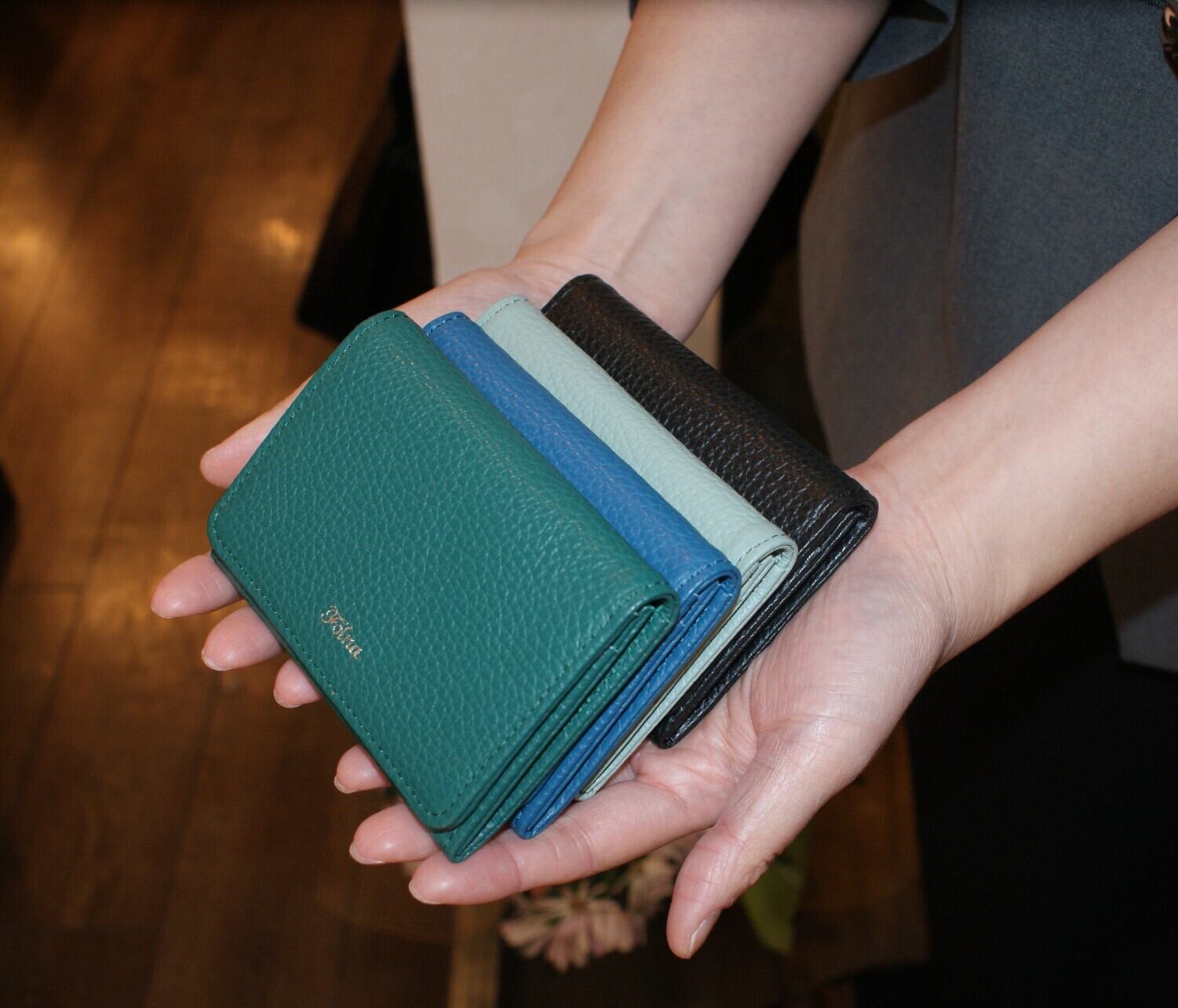 アドリアはカラフルな発色が美しいイタリアンレザーで、シボの型押しが高級感ある風合。さらにブランドロゴをシルバー箔で刻印して、洗練された上品なムードに仕上げました。