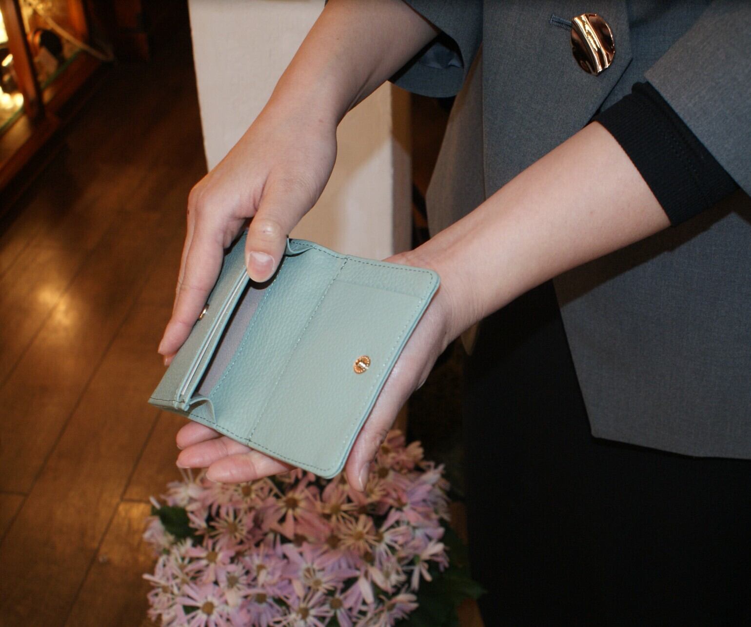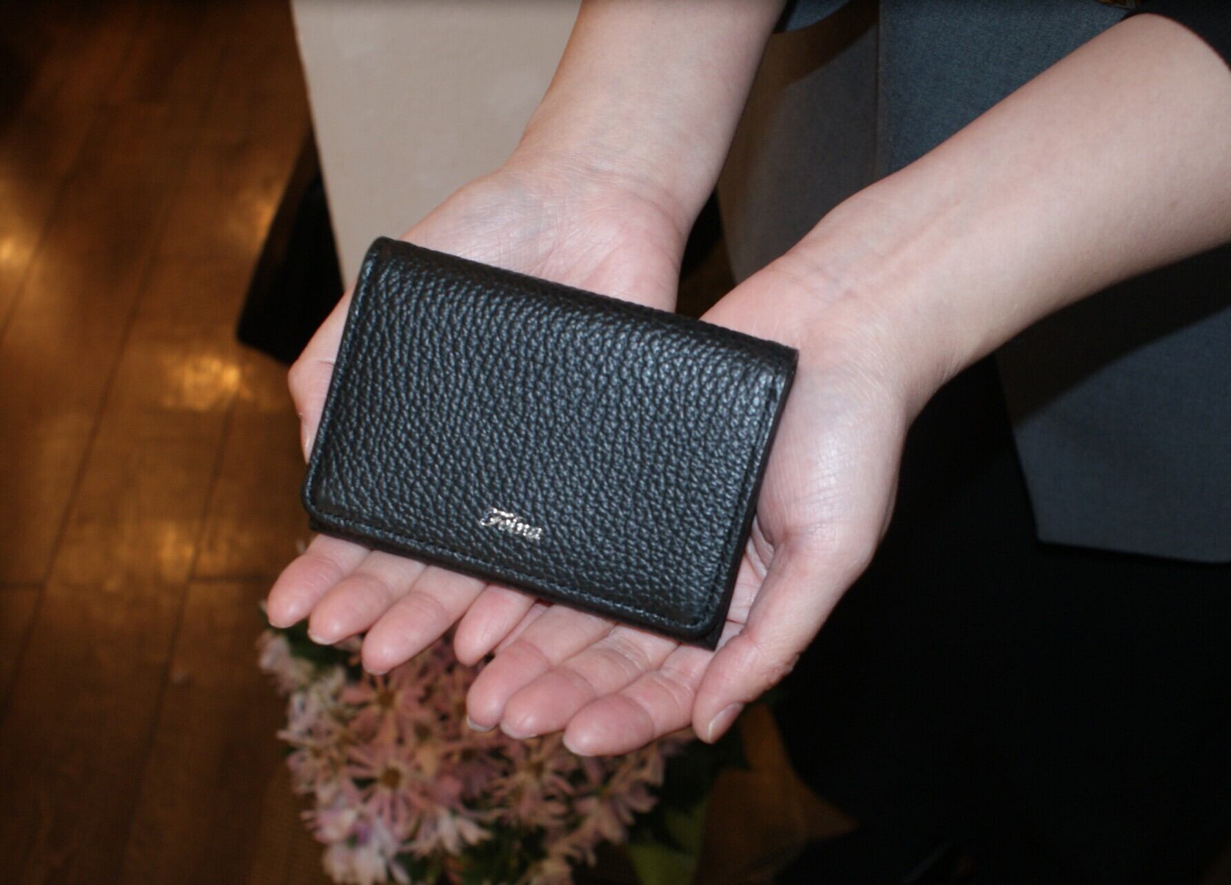 スマートな見た目ですが、メイン収納部分はマチ付きなので、カードや名刺を20枚前後入れてもすっきりと収められます。