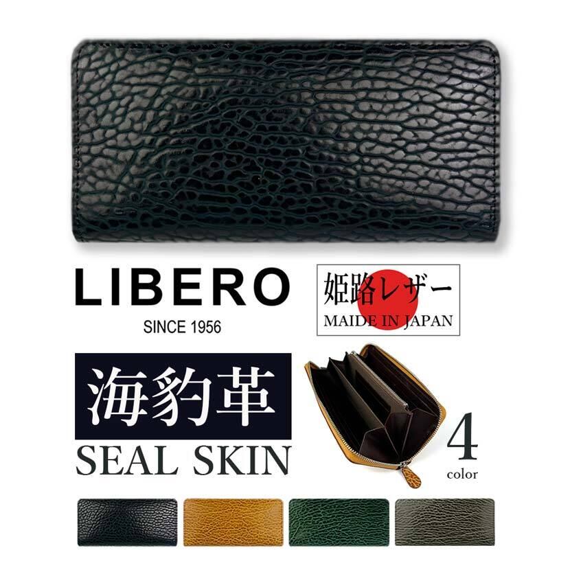 (日本製)高級 アザラシ革(シールスキン)× 姫路レザー ラウンドファスナー長財布 ロングウォレット ir-1400