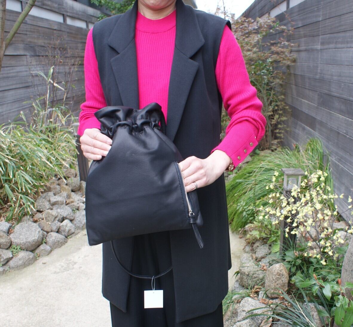 Folna(フォルナ) ソフトレザー ワイド巾着トートバッグ/日本製 fo-083358