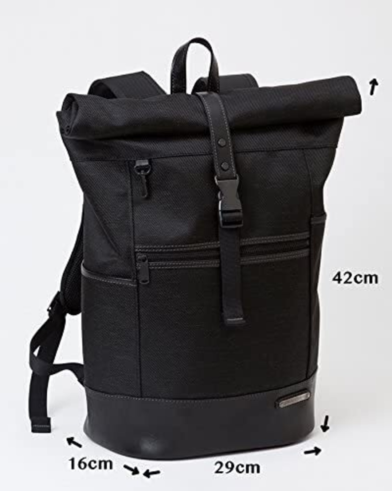 メイン素材に味のある表情を表現した混紡、附属に牛革を使用した、B4サイズが入りタウンユースはもとよりビジネスシーンにも使用可能な機能性・耐久性に優れたスタイリッシュなロールトップ型バックパックです。