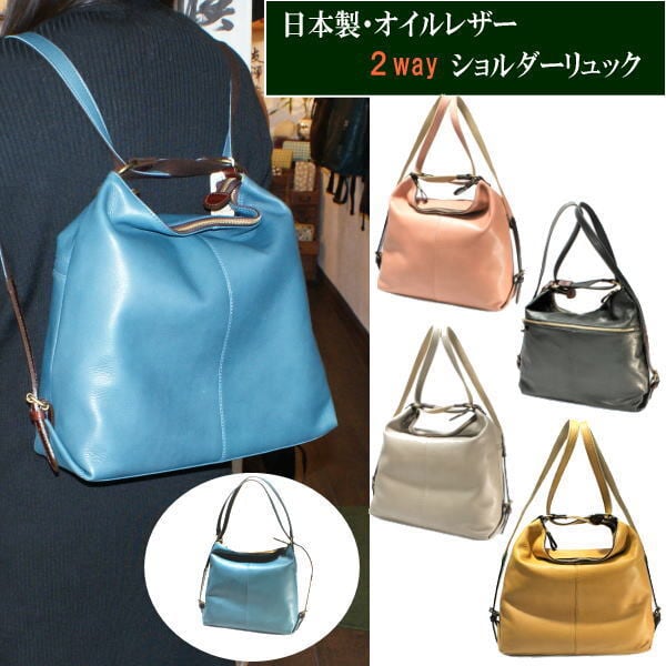 【日本製】(5color)オイルレザー 2wayショルダーリュック・バッグ ir-55