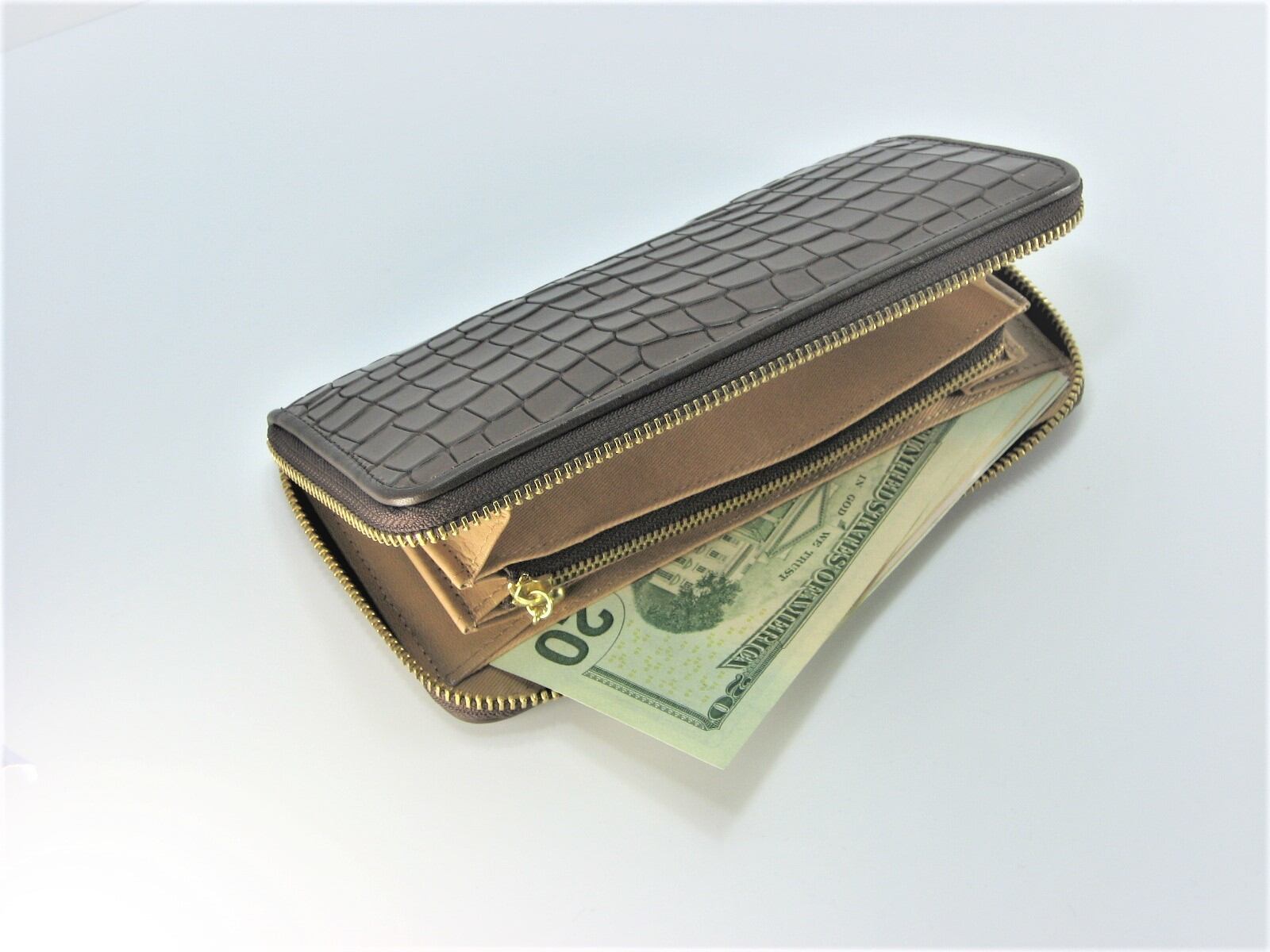 【afd・アンチフォルムデザイン】【日本製】(3color)牛革クロコ(型押し)オイルレザー ラウンドファスナー長財布 af-01