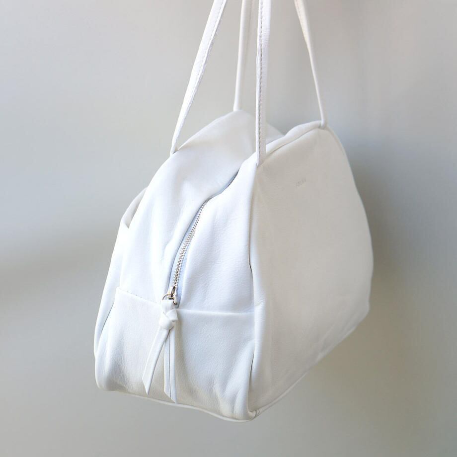 使用した牛革は、見た目の美しさはもちろん、革に触れた時の柔らかなタッチ感が魅力、ソフトで手馴染みがよく、やさしい持ち心地です。また、オールレザーなのに軽量なのも嬉しいポイント。