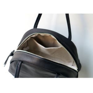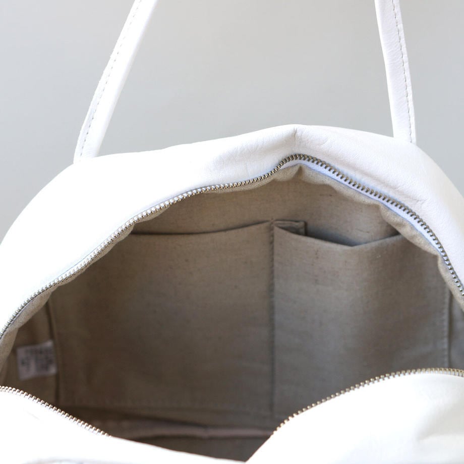 内側にはオープン・ファスナーの2タイプのポケットがあり、鍵やスマートフォンなどの小物の収納に便利です。