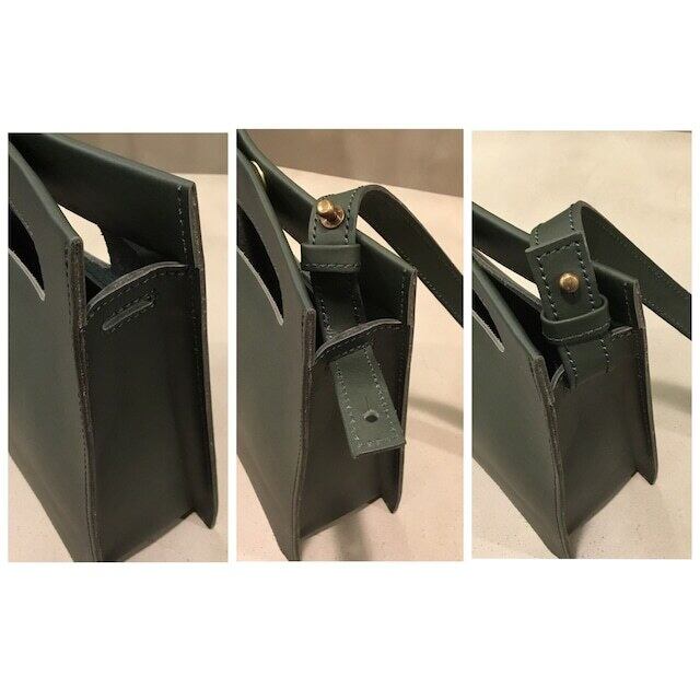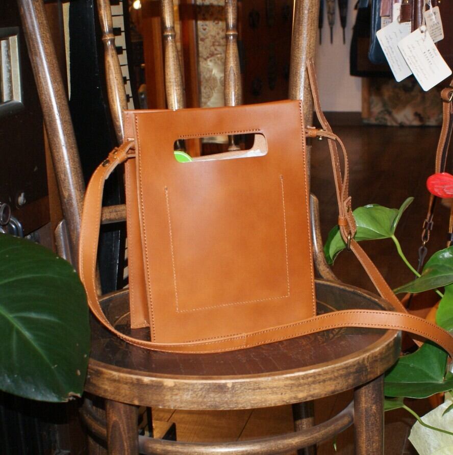 オイルヌメ製でくり抜きハンドが便利、サイドマチは台形で、間口はやや狭めです