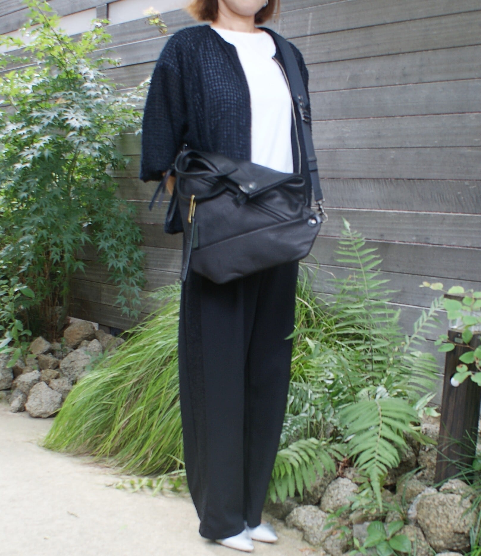 ■ショルダー取付け金具は三箇所、上下に取り付ければ口折りとなり三角形のフォルムに!